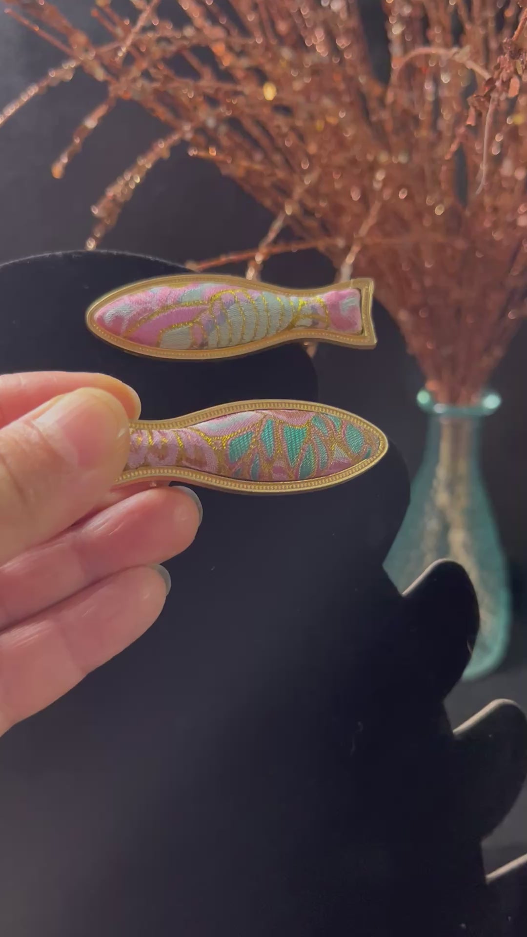 Aquatic Charm: Fish Brocade Hair Clips