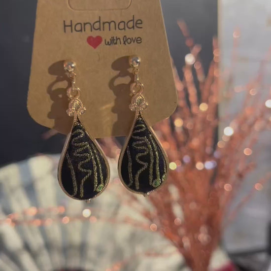 Experience the luxury of ancient artistry. These elegant teardrop earrings feature authentic Song Brocade, a silk-weaving craft with over a thousand years of history. Once reserved for the elite, this "living heritage" fabric is now reimagined as a modern statement piece.